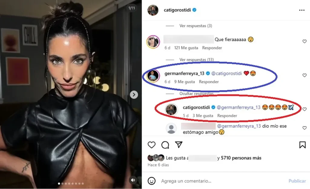 En redes sociales, los guiños entre ambos no tardaron en aparecer. En una publicación de Germán, Catalina comentó: “A mí me encantan los tatuajes en tu brazo”, a lo que el futbolista respondió sin dudar: “A mí me gustas vos”. Desde entonces, los emojis enamorados y las interacciones cómplices se multiplicaron, confirmando que lo suyo va viento en popa.
