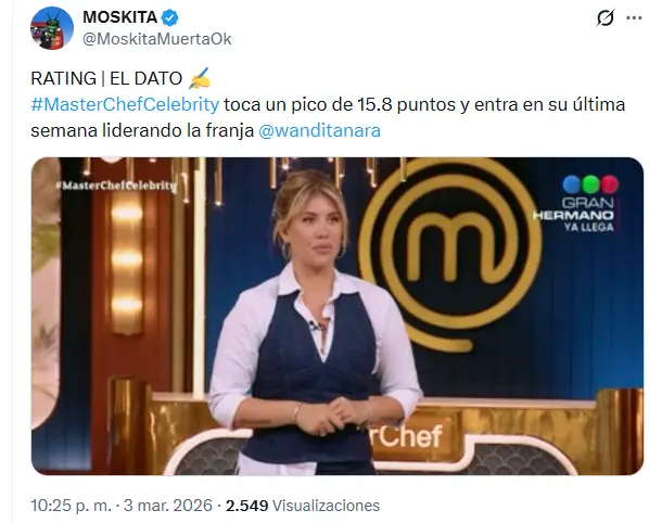 Se trata de MasterChef Celebrity, que en su recta final alcanzó un rendimiento destacado. Según los datos de audiencia de IBOPE, el programa de cocina fue el de mayor concentración de público del día, con picos de 15.8 puntos.