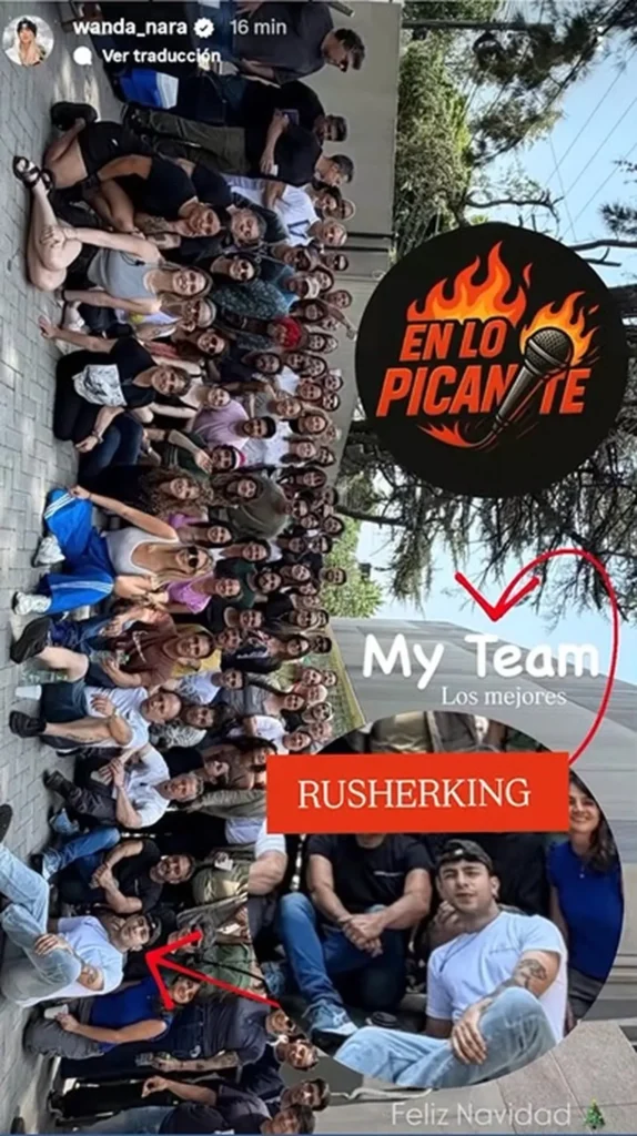 La imagen estaba acompañada por la frase “My team”, pero lo que parecía un simple gesto de orgullo laboral terminó convirtiéndose en un blooper monumental. Entre los presentes apareció nada menos que Rusherking, un nombre que hasta ese momento no figuraba en la lista oficial de participantes.