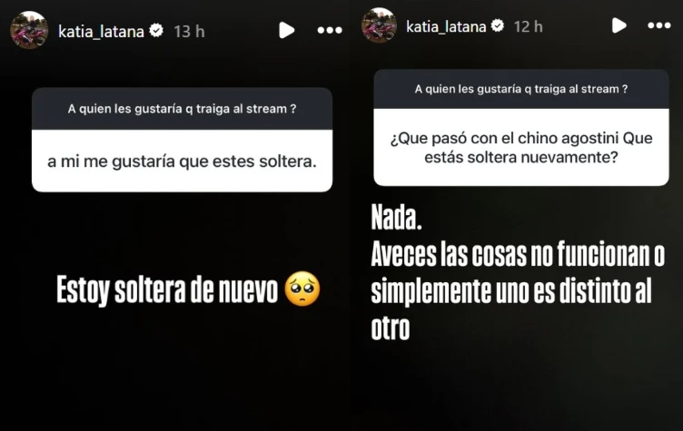 Fue la propia Katia quien confirmó la ruptura durante un intercambio con sus seguidores en Instagram, al habilitar la clásica cajita de preguntas. Ante el comentario “A mí me gustaría que estés soltera”, la ex participante de GH lanzó la frase que despejó todas las dudas: “Estoy soltera de nuevo”, acompañada por una carita con los ojos llorosos.