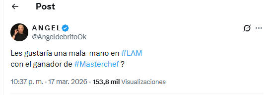 Con el correr de los días, la tensión creció aún más cuando finalmente se mostraron en televisión a los dos finalistas. Sin embargo, lejos de calmar las aguas, las redes sociales volvieron a encender la polémica. El propio De Brito escribió: “Les gustaría una mala mano en #LAM con el ganador de #Masterchef ?”, generando todo tipo de especulaciones entre los seguidores del ciclo.
