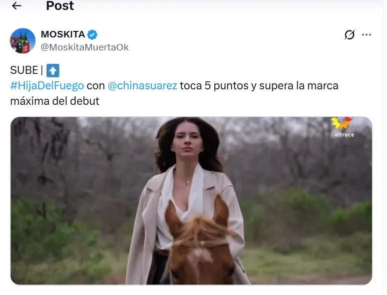 El mejor momento para la serie llegó cerca del final. A las 21:58, el ciclo de Iván de Pineda lograba 8.1 puntos, mientras que Hija del Fuego alcanzaba los 5.2 puntos de rating, su pico máximo de la noche. De esta manera, el segundo episodio superó al debut y mostró una mejora en la audiencia de El Trece.