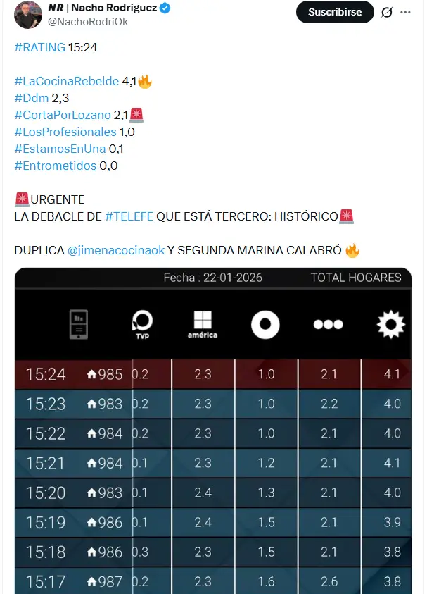 El crecimiento sostenido de La Cocina Rebelde parece haber modificado el tablero de la competencia, logrando atraer a una audiencia que históricamente acompañaba a Telefe. Además, el repunte de DDM en América también aportó presión a un horario que hasta hace poco